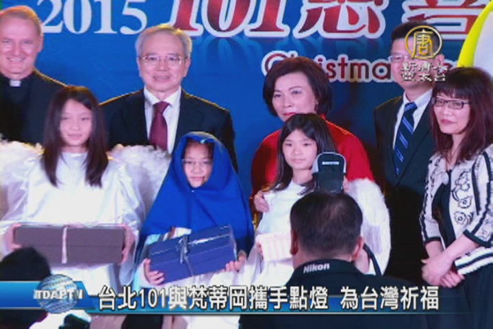 【新唐人亞太台 2015 年 12 月 07 日訊】進入聖誕季節,台北101首度與梵蒂岡教廷合作聖誕點燈,台北101董事長宋文琪、教廷駐華大使館代辦陸思道,今晚,共同點亮13公尺高的數位互動耶誕燈。