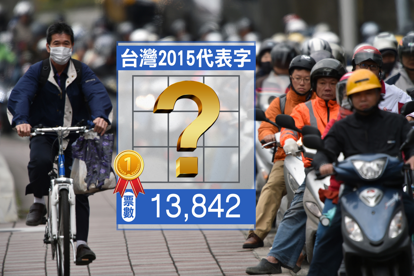 公布揭曉,「換」字以1萬3千多票,遙遙領先,第二名「變」字,以及第三名的「騙」,從九萬多的投票中,被民眾票選為2015年年度代表字。