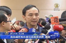 2016-01-19 20:05:20新北市長朱立倫今天(19日)主持敗選後的第一次市政會議,對於黨內有要王金平辭去立委,為敗選負責的聲音,朱立倫說,所有的責任,他一肩扛。