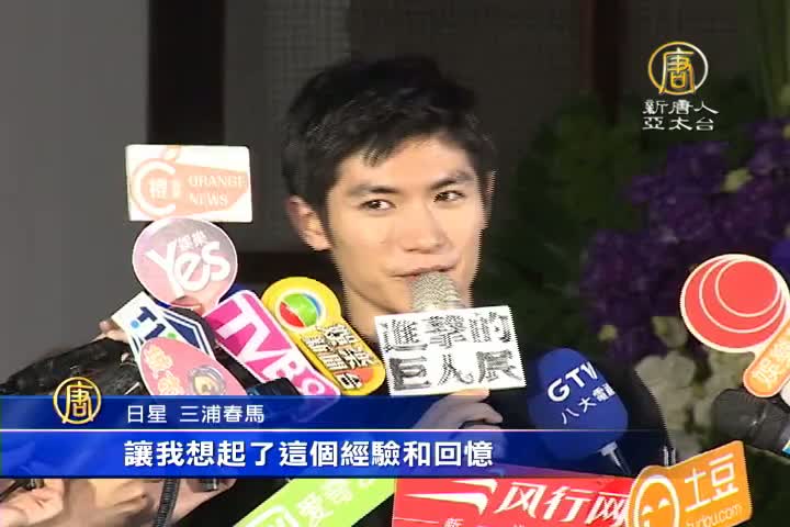 【新唐人亞太台 2015 年 12 月 11 日訊】日本男星三浦春馬,為「進擊的巨人展」開幕站台,吸引上百位粉絲到場追星,現場安排破牆儀式,由三浦春馬打破舞台背板,迎接小巨人出場,也象徵展覽正是開幕。