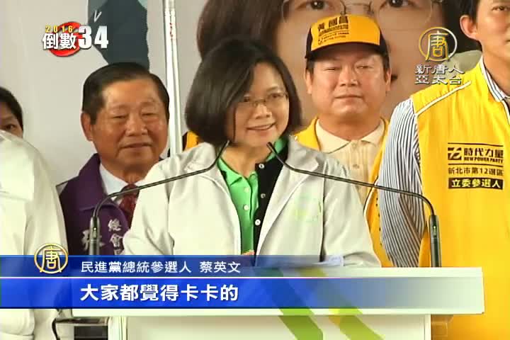 民進黨總統參選人 蔡英文:「2008年,我在做民進黨黨主席的時候,剛剛開始的時候,大家都覺得卡卡的,大家都覺得說看起來不像政治人物,不過各位,經過這麼多年的努力,2016年,我有準備要做總統了。」