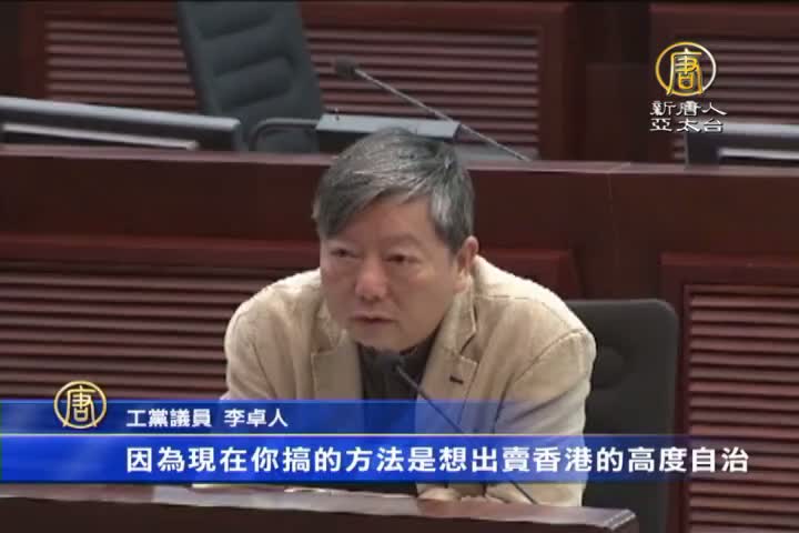 工黨議員李卓人:「因為現在你搞的方法是想出賣香港的高度自治,在香港特別行政區整一個特別的區域,過了給內地在香港執行內地的法律,破壞一國兩制,破壞基本法,出賣香港,這比欺騙更可怕。」
