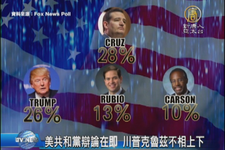 【新唐人亞太台 2015 年 12 月 15 日訊】關注美國總統大選。美國共和黨總統初選,將在今天(週二)舉行第五次的電視辯論會。不過,與上次辯論相比,目前共和黨內各參選人的民調支持度,已經出現明顯變化。馬上來關心。