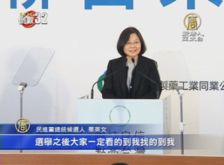 民進黨總統候選人 蔡英文:「今天來到這裡也是要跟大家保證,現在各位在選舉找得到我看得到我,選舉之後大家一定看得到我找得到我,我們一定有機會坐下來,對國家很多政策交換意見。」