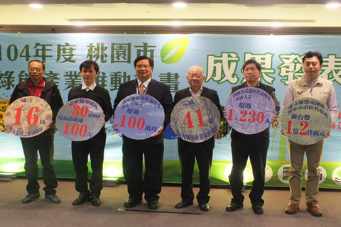 【新唐人亞太台 2015 年 12 月 17 日訊】桃園市府經濟發展局推動廠商朝綠能發展,委託元智大學成立「綠能產業技術服務團」,輔導廠商建立自主化節能管理能力,包括節水節能、綠色工廠、綠色產品認證等,16日於市府舉辦「104年度桃園市綠能產業推動計畫成果發表會」。