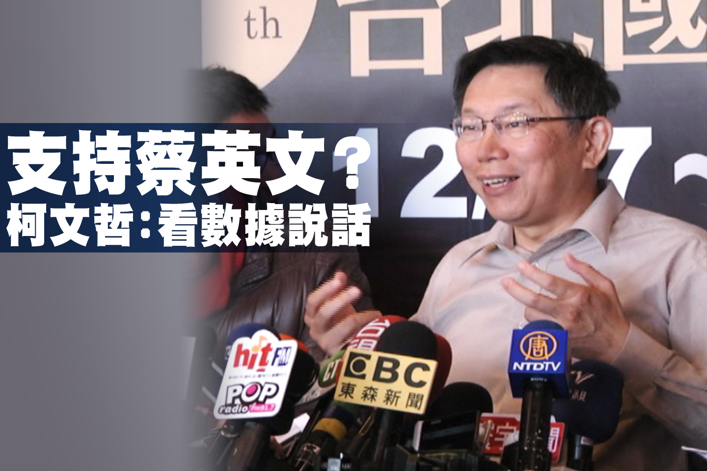 【新唐人亞太台 2015 年 12 月 17 日訊】台北市長柯文哲在昨天接受平面媒體專訪時表示,「蔡英文取得勝利,是大勢所趨」,此番話被外界解讀是,首度表態支持民進黨總統候選人蔡英文,對此,柯文哲今天表示,只是看數據說話而已。