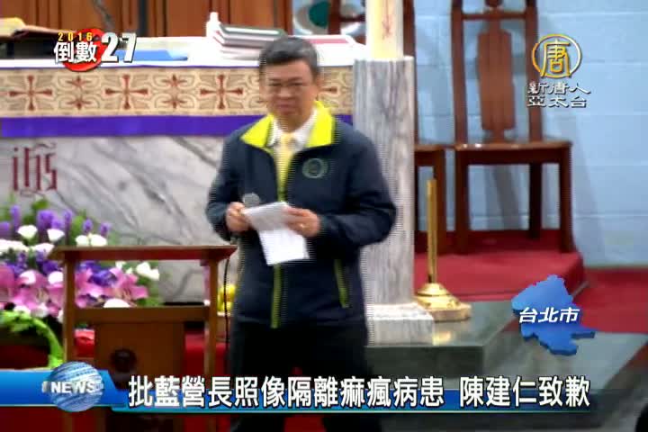 【新唐人亞太台 2015 年 12 月 20 日訊】民進黨副總統候選人陳建仁和妻子羅鳳蘋一起出席天主教活動,對於自己日前形容,藍營的長照政策像是隔離麻瘋病患,遭批失言,今天(20日)陳建仁也主動致歉。