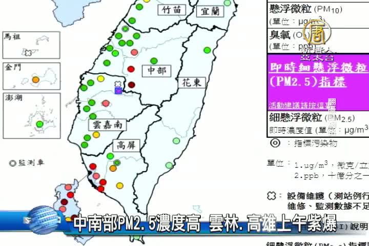 中南部紫爆!PM2.5細懸浮微粒濃度超標