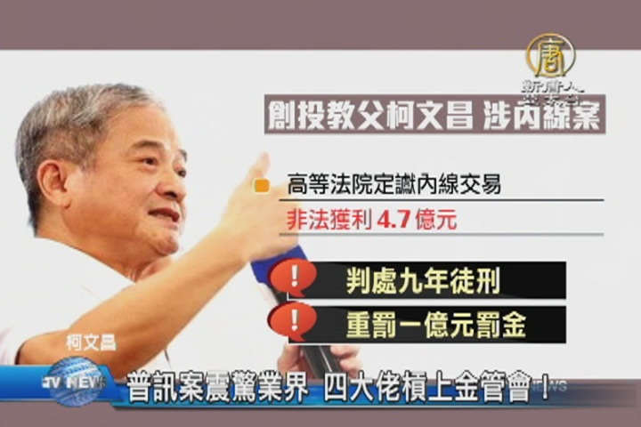 【新唐人亞太台 2015 年 12 月 21 日訊】財經消息來看到,普訊創投董事長柯文昌,內線交易案被判有罪定讞,今天,科技界四巨頭聯袂舉行記者會聲援,批評有關內線交易規定含糊不清,不過,金管會主委曾銘宗反駁說,美國規定比台灣還要嚴格,四位大佬是誇大其辭,造成誤導。