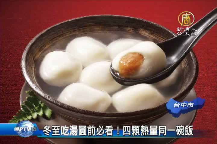 【新唐人亞太台 2015 年 12 月 21 日訊】明天就是「冬至」,吃湯圓是傳統民間進補習俗,不過,提醒觀眾朋友,湯圓的熱量不低,4顆包餡大湯圓,就相當於1碗飯的熱量;如果身邊有高血壓、腎臟病友,建議吃鹹湯圓時,要避免喝湯,減少鈉的攝取。