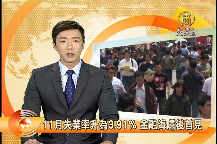 【新唐人亞太台 2015 年 12 月 22 日訊】景氣低迷情勢,不只反應在基本工資凍漲,行政院主計總處上午公布11月失業率,為3.91%,比上個月升高了0.01個百分點,往年9月過後,失業率通常會下降,但今年10月及11月,失業率都呈現不降反升,為近6年來首見。