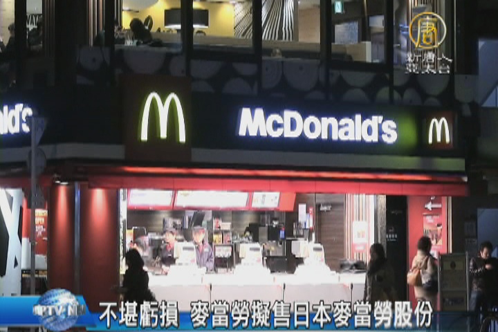 【新唐人亞太台 2015 年 12 月 22 日訊】美國速食業龍頭麥當勞,在日本經營陷入苦戰,現在打算要出售日本麥當勞股份,出售金額約為1千億日圓,相當於台幣274億。「日本經濟新聞」報導,美國麥當勞持有日本麥當勞控股公司5成股份,有意出售大約33%的持股,並開始與大型商社、投資基金洽詢。之所以要出售日本麥當勞股份,主要因為在日本的經營陷入苦戰。去年夏天,日本麥當勞使用過期不良雞肉、今年1月又爆發商品混入異物,使得日本民眾對麥當勞信心重挫。今年營收預計虧損380億日圓,連續兩年虧損。