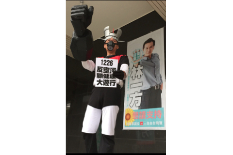 立委參選人扮裝 呼籲鄉親參加1226反空污顧健康大游行