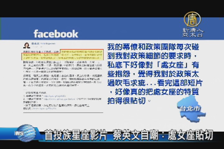 首投族星座影片 蔡英文自嘲:處女座貼切