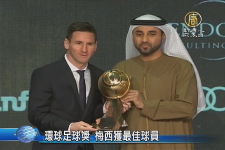 【新唐人亞太台 2015 年 12 月 28 日訊】在杜拜舉辦的2015環球足球獎,梅西獲得年度最佳球員獎,西甲豪門巴塞隆納拿下4大獎項成為最大贏家, 而梅西憑藉今年的出色表現,擊敗皇馬的C羅和尤文圖斯門將 布馮獲頒年度最佳球員。