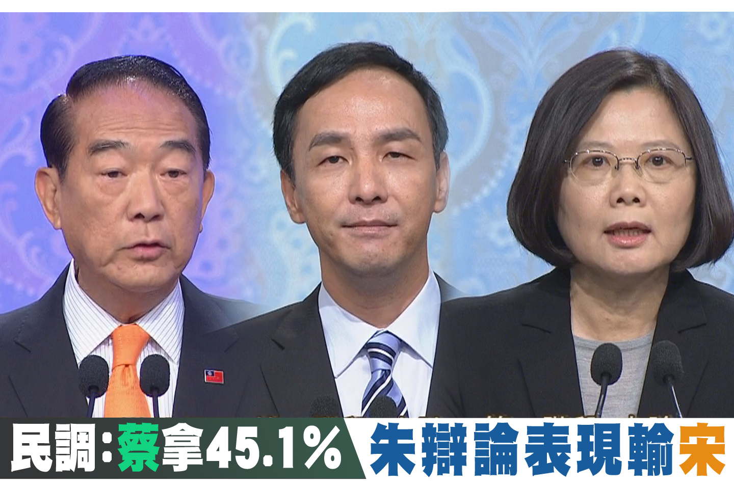 民調:蔡拿45.1% 朱辯論表現輸宋