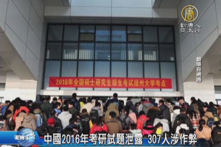 【新唐人亞太台 2015 年 12 月 30 日訊】中國碩士研究生入學考試,爆出舞弊消息,官方教育部稱,接到舉報,部分考題洩漏,疑似有多達307人涉案。