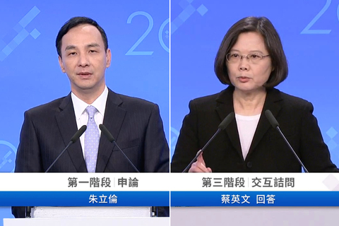 國民黨總統候選人朱立倫回答問題時先對蔡英文說,剛剛申論時,蔡主席花了5分鐘在罵馬英九,但現在站妳面前的是朱立倫,要說明朱立倫的網路政策,朱提出兩年內要超越新加坡,未來目標將是和韓國並駕齊驅;民進黨總統候選人蔡英文針對數位落差提出,未來要讓網路使用成為全民基本權利,並開發相關網路事業。