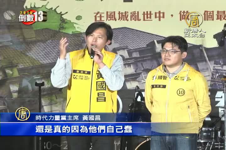 【新唐人亞太台 2016 年 01 月 03 日訊】選前倒數兩週,新竹市選情持續升溫,國民黨立委候選人鄭正鈐被指控陷入賄選,昨天晚上,時代力量候選人邱顯智與黨主席黃國昌共同參加造勢,黃國昌說,請對手可以準備去搶第三名了。