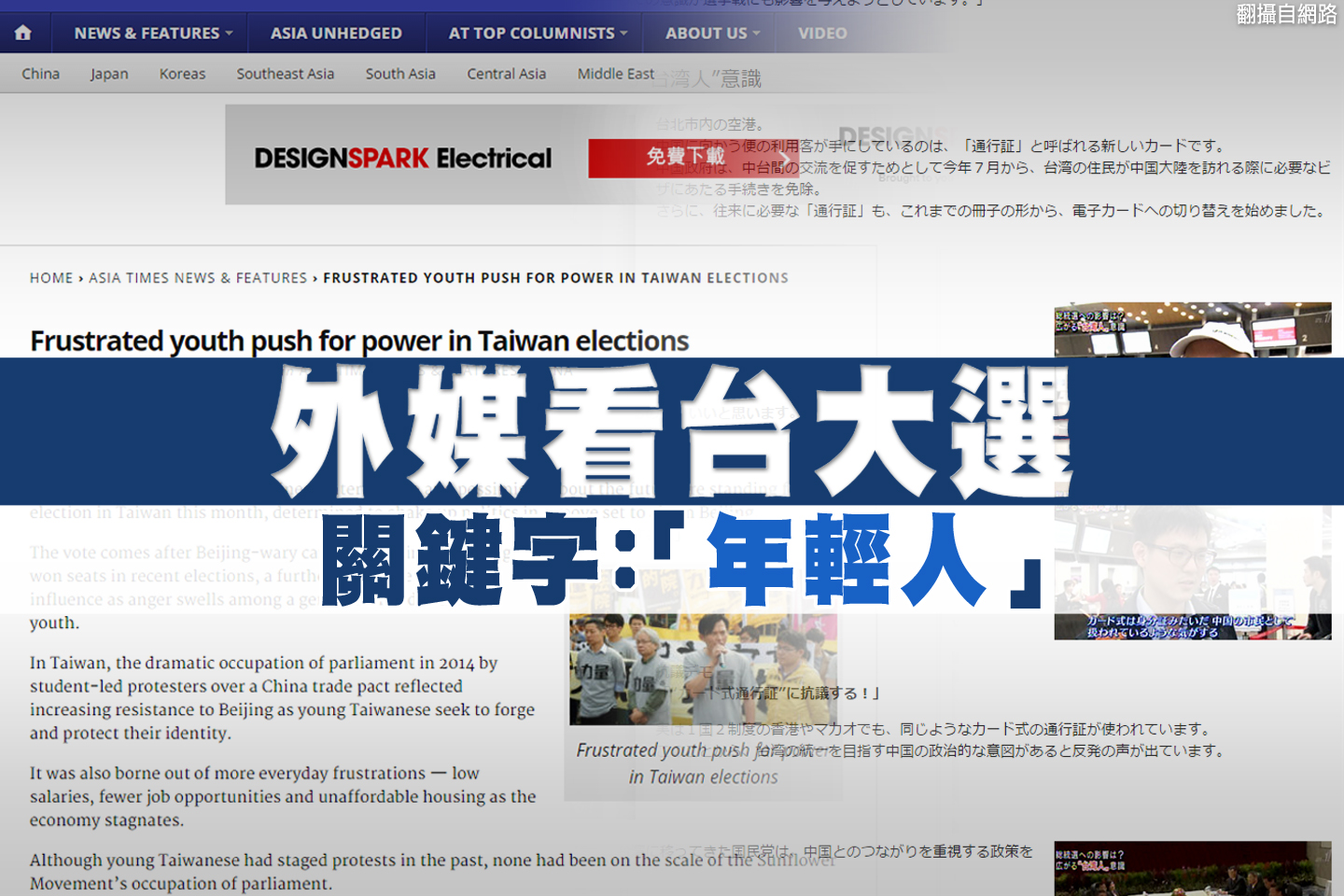 繼2014年九合一選舉之後,年輕人再次在台灣選舉中扮演關鍵角色,日本《每日新聞報》就直指,台灣今年選戰的關鍵字,就是「年輕人」。