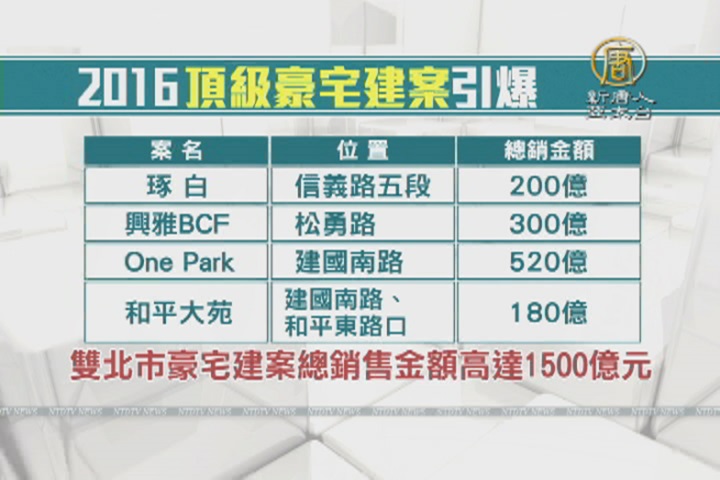 今年豪宅建案層出,業者看準總統大選後,市場不確性因素消除,但去年每坪200萬以上建案,卻只成交13件,專家估計豪宅市場今年至多只能成長一成。