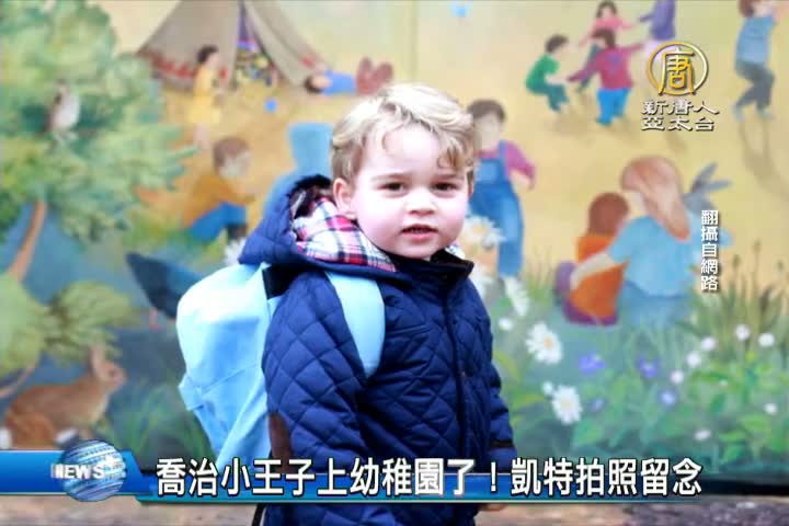 【新唐人亞太台 2016 年 01 月 07 日訊】2歲半的英國喬治小王子開始上幼稚園了。英國王室發放相片,喬治小王子一身藍色造型,身穿藍色厚外套,背著淺藍色書包,由媽媽凱特在幼稚園外,為他拍照留念。開學第一天 主要是適應學校環境。而小王子對於學校外牆上的卡通油漆,似乎很感興趣。