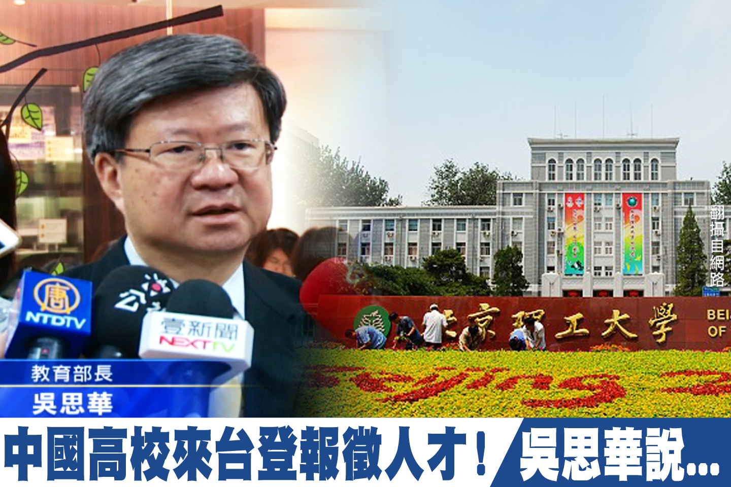 【新唐人亞太台 2016 年 01 月 08 日訊】據《聯合報》報導,台灣教師已經成為中國民辦大學的重要人才來源。去年有132名台籍教授到福建省任教,今年還要再召募200多位教師。而北京理工大學珠海學院1月4號,在台灣平面媒體刊登廣告徵才,教育機構並不在明確開放中國廣告來台的項目,來聽教育部長吳思華上午的回應。