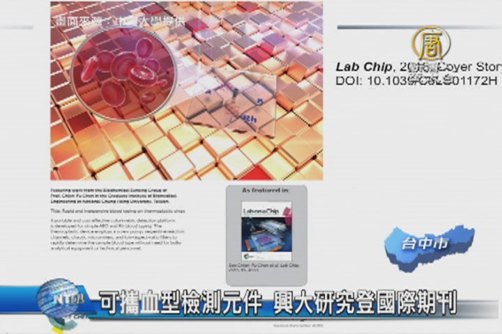 【新唐人亞太台 2016 年 01 月 08 日訊】再來看到,台灣醫療研究再登國際期刊,中興大學研究團隊,成功研發出可攜式血型檢測元件,登上英國皇家化學學會期刊,之後也有希望造福,許多開發中國家。