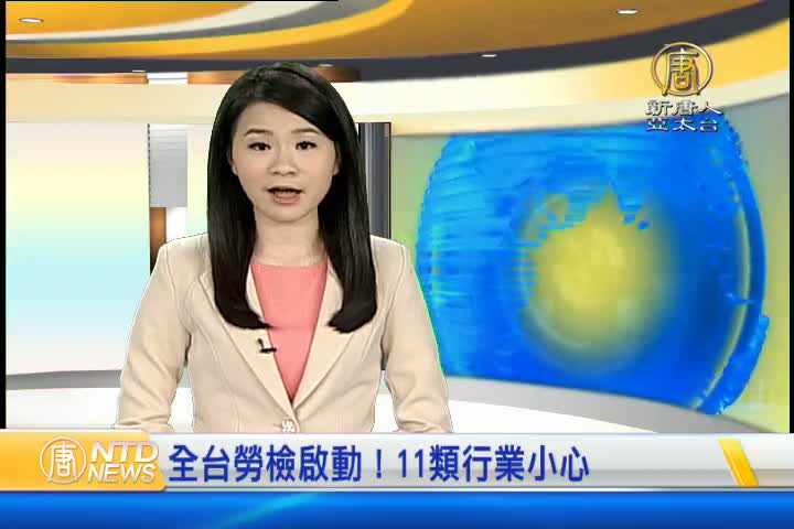 【新唐人亞太台 2016 年 01 月 11 日訊】再來看到,勞動部表示,今年度將針對金融保險業、物流業、醫療院所、派遣業、保全業,還有工讀生等11類行業或對象,發動全國性勞動檢查;其中,特別針對電子零組件製造業 284家企業,實施全面普查。