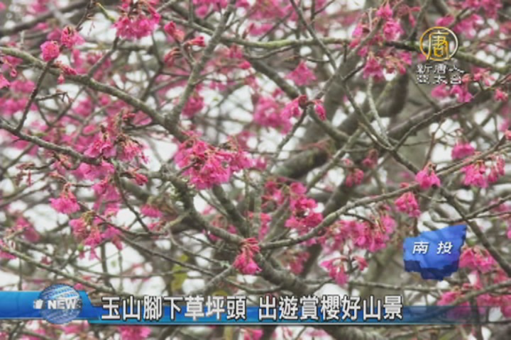 【新唐人亞太台 2016 年 01 月 12 日訊】南投信義鄉草坪頭觀光茶園賞櫻季開始了。草坪頭位於玉山腳下,海拔1300公尺,種植了3500株的櫻花樹,有山櫻花、吉野櫻、八重櫻等,花海形成一條櫻花隧道,是郊遊賞櫻的好去處。