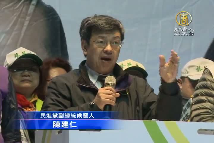 【新唐人亞太台 2016 年 01 月 13 日訊】大選倒數三天,民進黨副總統候選人陳建仁(12日)昨天馬不停蹄參加桃園新竹掃街,晚間幫無黨籍立委候選人鄭永金輔選。