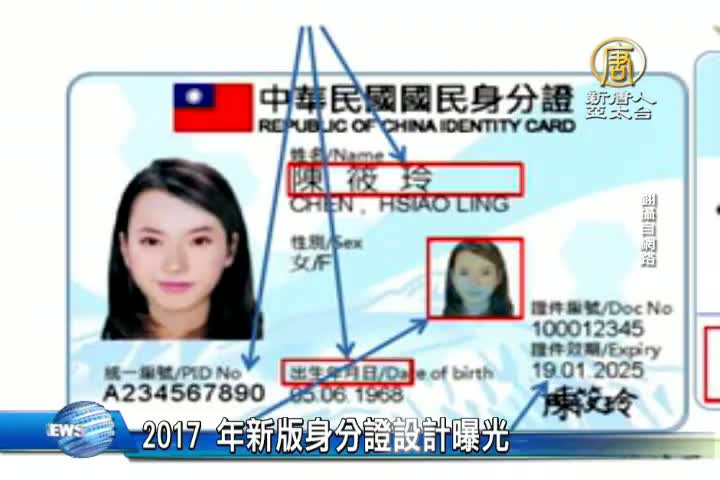 【新唐人亞太台 2016 年 01 月 13 日訊】台灣準備在 2017 年全面換發新的身分證,目前內政部已經完成了初步設計,新版身分證與國際接軌,除了用西元標示資訊外,另外新增英文姓名與個人簽名,比照護照中英文並列,正面還有個人 一大一小的雙照片防偽造,身分證顏色改為藍白相間,對此,國發會的「眾開講」網站,歡迎民眾上網表達對新身分證的意見。