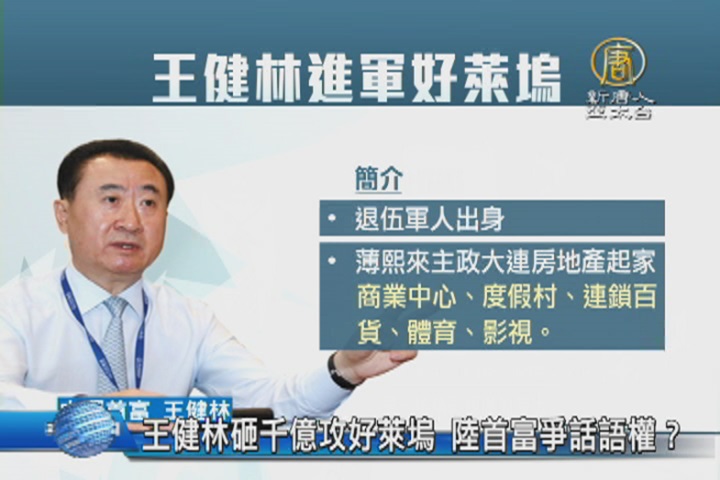 【新唐人亞太台 2016 年 01 月 13 日訊】再來看到,中國首富王健林持有的大連萬達集團,昨天宣布以35億美元,相當於台幣千億,收購美國好萊塢「傳奇影業公司」的多數股權,這也是中國目前對好萊塢最大規模的投資。