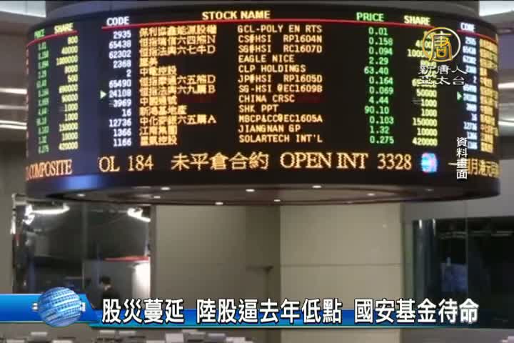 【新唐人亞太台 2016 年 01 月 14 日訊】午報頭條帶您看到,又是股災蔓延,美股疲軟,亞股再受驚嚇,中國股市今天跌掉25%,逼近去年低點 ,日股早盤大跌711點,港股盤中也下跌434點,台股早上一度失守7700大關,所幸隨後跌幅收斂,7700點失而復得。國安基金執行秘書吳當傑強調,「只要台股跌深,國安基金一定加碼。」呼籲投資人要對台股有信心。