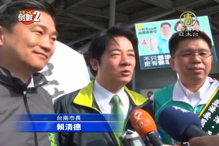【新唐人亞太台 2016 年 01 月 14 日訊】離投票日,只剩2天,曾經在台南拿下最高得票率的市長賴清德,今天前往高鐵車站,向年輕人催票,決定國家的未來。