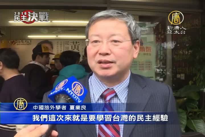 【新唐人亞太台 2016 年 01 月 15 日訊】2016總統國會大選,吸引海內外媒體關注,中國旅外學者也來到台灣近距離觀察台灣的選舉文化,學者認為台灣作為華人唯一民主國家,台灣的民主經驗值得借鑑,也期待推動中國民主化。