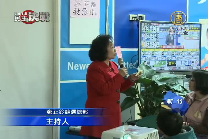 【新唐人亞太台 2016 年 01 月 16 日訊】馬上帶您來看到各地立法委員競選總部的現場情況,關心新竹市立委選情,新竹市唯一席,呈現十搶一情況,選前因為被質疑發放黑函,而遭檢調傳喚的國民黨鄭正鈐,目前開票情況在部分選區領先,但整體仍落後民進黨柯建銘,馬上看到現場情況。