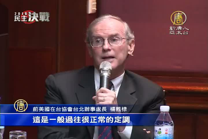 【新唐人亞太台 2016 年 01 月 16 日訊】來自歐、美、亞10個國家的18位學者專家及政府官員組成的「國際觀選團」,來台近距離觀察台灣的民主選舉,前AIT處長楊甦棣表示,台灣很可能見證第三次政黨輪替,台灣民眾,應該為自己感到驕傲。