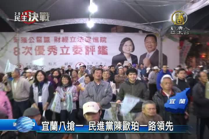 【新唐人亞太台 2016 年 01 月 16 日訊】鏡頭轉到宜蘭,宜蘭唯一一席立委,共有8位候選人角逐,目前開票結果由民進黨參選人陳歐珀一路領先,現場支持者,氣氛相當興奮。