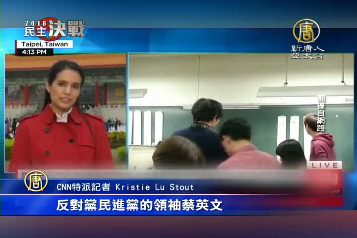 CNN特派記者 Kristie Lu Stout:「投票現在已經結束,大家都在等結果出爐。大部分的人都期待,反對黨民進黨的領袖蔡英文會成為下一位台灣總統,也是這個島嶼上第一位女性領袖。」