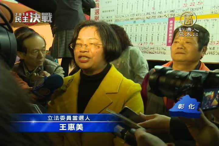 【新唐人亞太台 2016 年 01 月 16 日訊】關心彰化選情,第一選區,國民黨王惠美目前拿下9萬多票,已經自行當選。