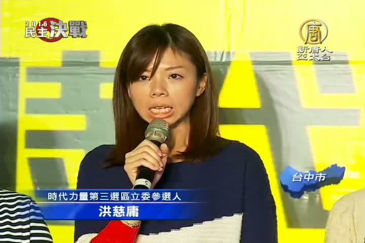 【新唐人亞太台 2016 年 01 月 16 日訊】接著看您來看到,台中第三選區立委投票結果出爐,時代力量洪慈庸以一萬多票的差距贏得立委席次,稍早,她由洪爸爸、洪媽媽還有市長夫人廖婉如陪同下,哽咽發表感言。