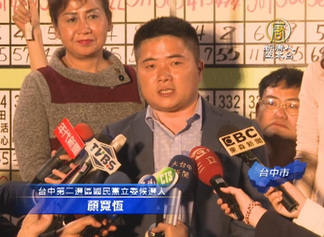 【新唐人亞太台 2016 年 01 月 16 日訊】在台中第二選區,國民黨立委候選人顏寬恆的競選總部放起煙火慶祝,現場氣氛熱烈,顏寬恆在父親顏清標和家人的陪同下,發表當選感言。