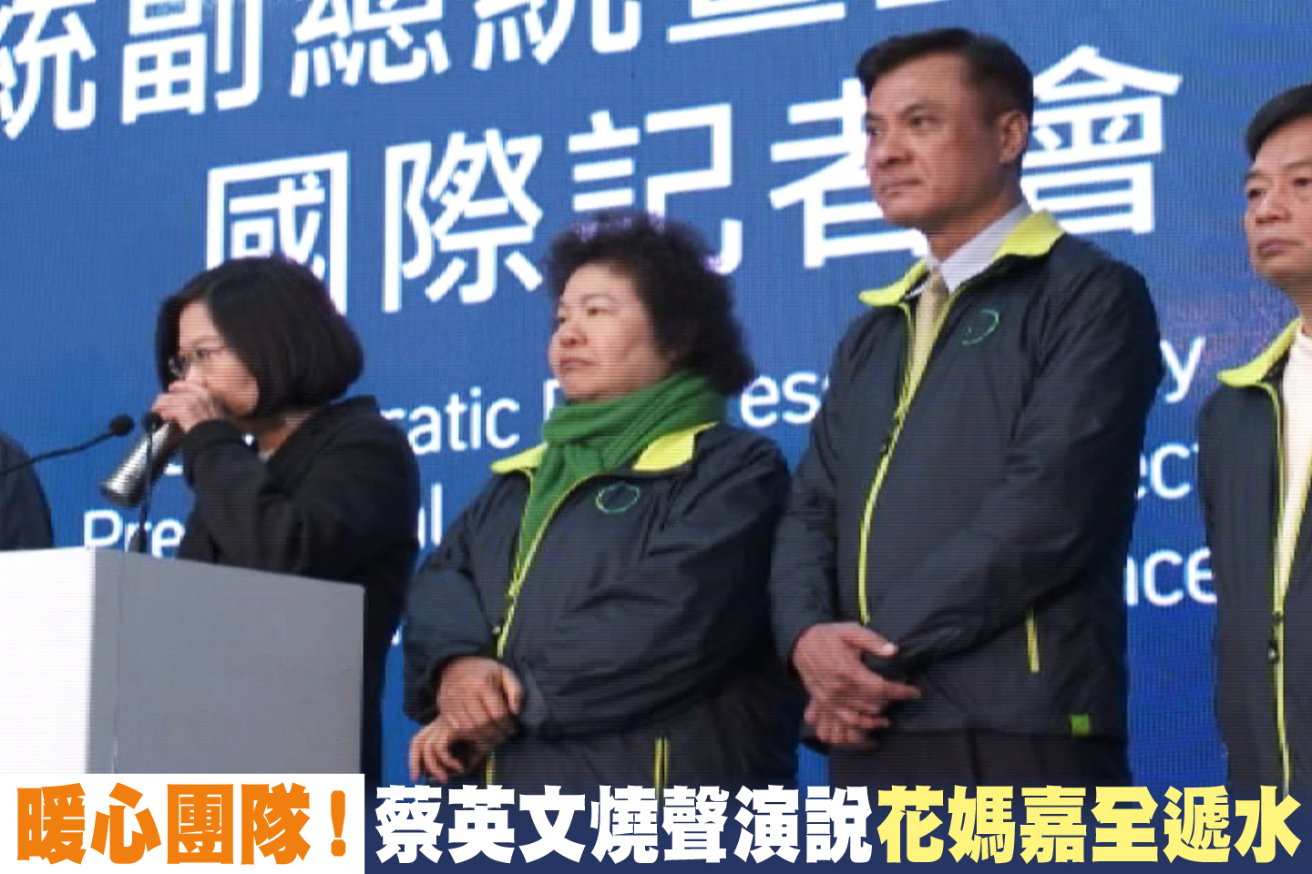 暖心團隊!蔡英文燒聲演說花媽嘉全遞水