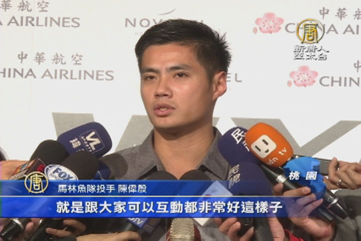 【新唐人亞太台 2016 年 01 月 22 日訊】旅美投手陳偉殷,以5年8千萬美元(約新台幣26億多元)與美國職棒大聯盟邁阿密馬林魚簽下合約,新球季確定效力馬林魚隊,對於新合約內容,陳偉殷感到滿意, 今天回台,感謝球迷支持。