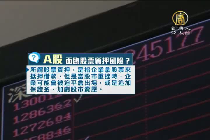 【新唐人亞太台 2016 年 01 月 27 日訊】上證指數昨天(26日)大跌6%、創13個月新低,股票質押風險飆升,有四家中國企業受不了緊急申請停牌。分析認為,要是中國股市持續下跌,企業被迫追繳保證金,或直接平倉出場,將形成巨大賣壓。