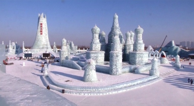(1月4日)參與人員正為即將展開的哈爾濱冰雪節做全力以赴的最後修飾。