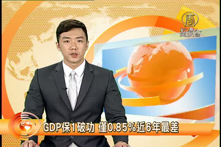 【新唐人亞太台 2016 年 01 月 29 日訊】行政院主計總處,今天上午公布去年第四季GDP成長概估負0.28%,連續2季負成長,去年全年GDP只有0.85%,「保1」破功,是近6年來最差,史上第4低,也是亞洲4小龍最糟表現。