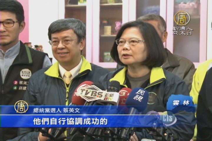 【新唐人亞太台 2016 年 01 月 29 日訊】民主進步黨總統當選人蔡英文、副總統當選人陳建仁下午到雲林謝票,對於立法院正副院長結果,蔡英文強調沒有勸退柯總召,是黨團協調的成果。對於外界認為,蔡英文把手伸進國會,蔡英文直言,這是「過度解讀」。