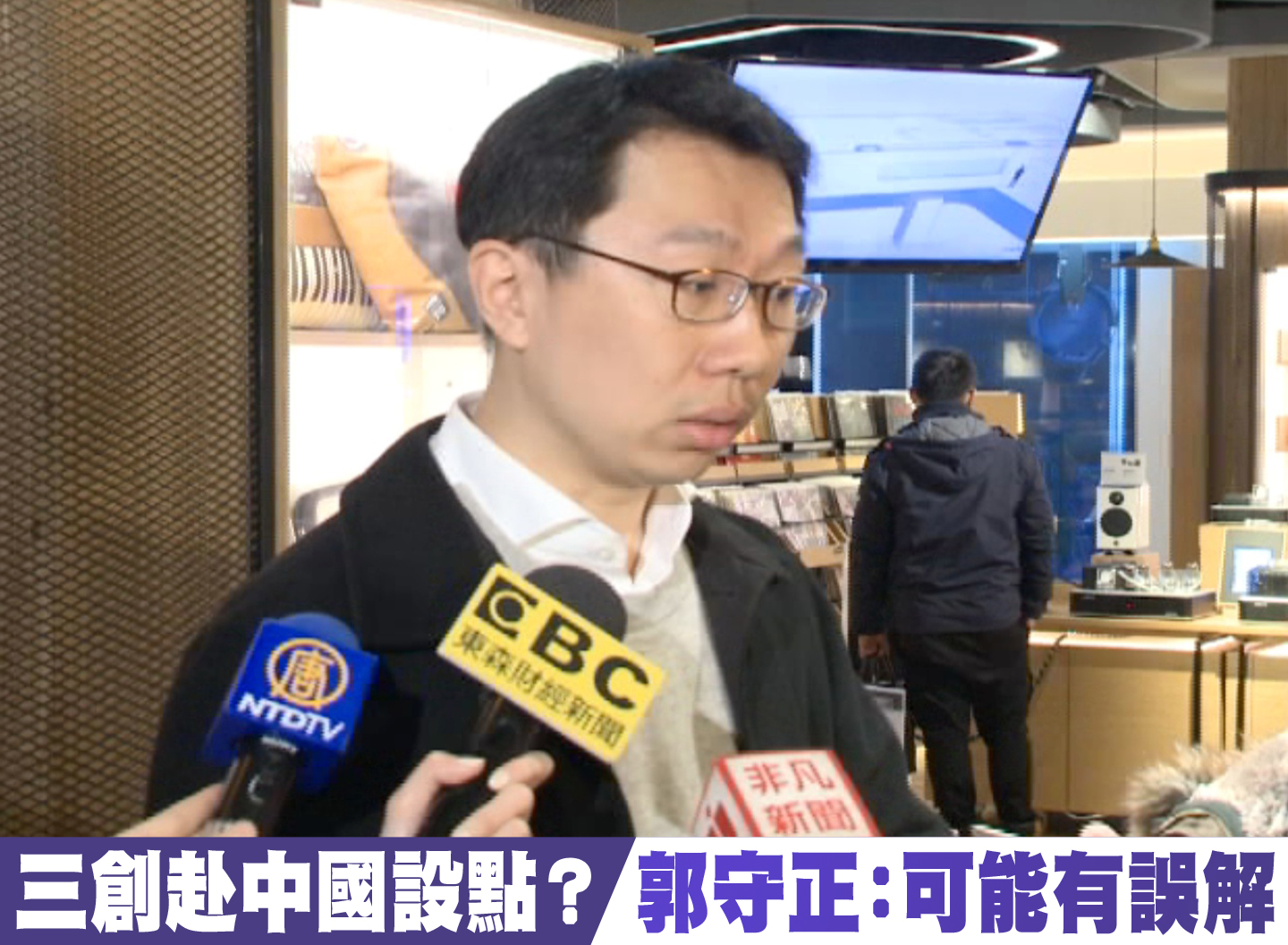 【新唐人亞太台 2016 年 02 月 01 日訊】外界傳言三創將在新年過後,赴中國昆山設點,對此,三創生活董事長郭守正特地在今天媒體詢問時,提出澄清。